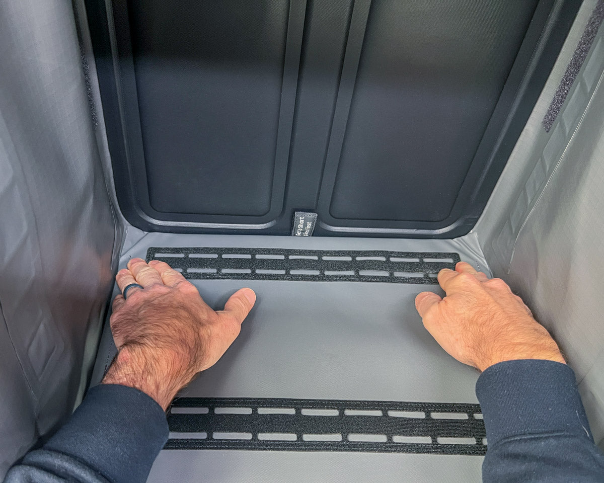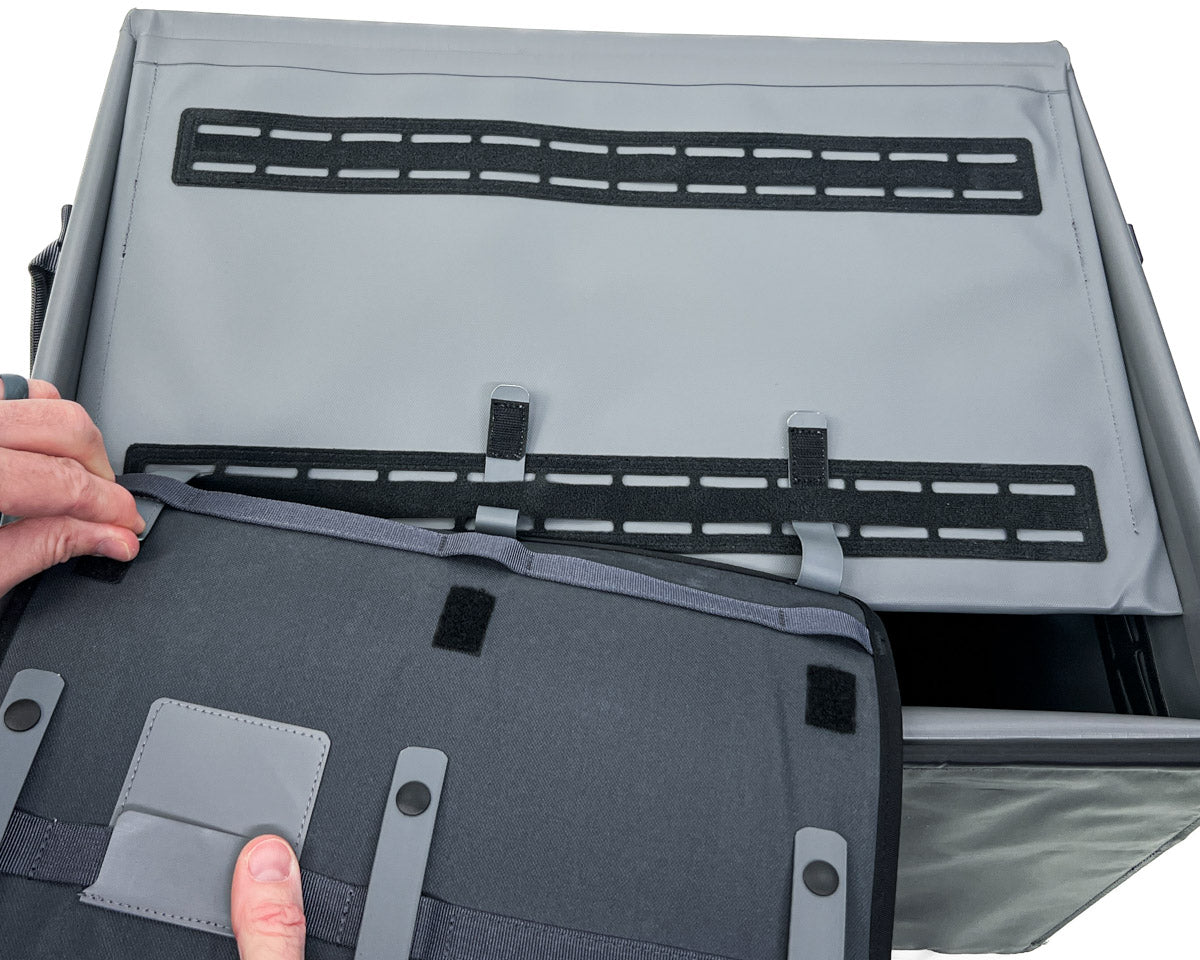 After removing the lid, flip all of the panels open. If you're planning to add pockets to the interior of your Gear Box, now is a good time to install them.